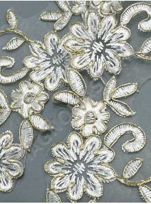 Шитье белое с золотой нитью "Ветка сакуры" 8см уп.15 ярд (цена 1 ярд 42.7р)